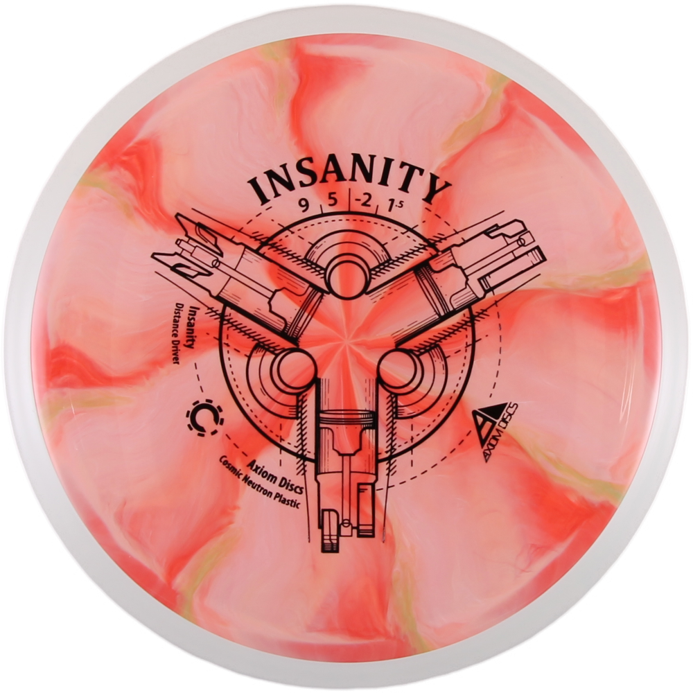 The Insanity is Axiom's first distance/control driver with a 20mm rim width. This disc is slightly less stable than the ultra popular MVP Inertia. If you're looking for a straight flying GYRO driver with loads of attractive colour options, you might as well try Insanity.