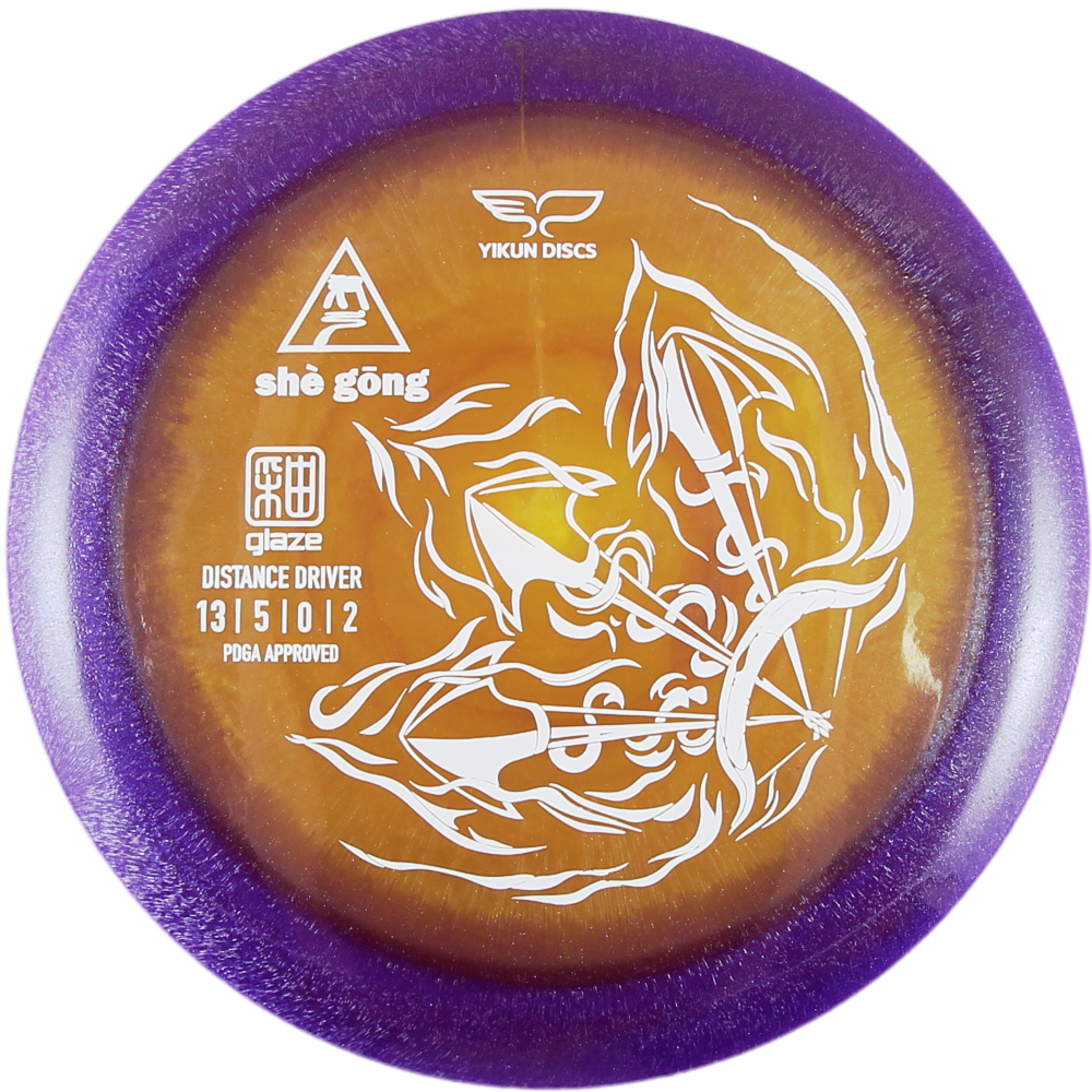 The She Gong is a maximum distance driver by Yikun. This mold is manufactured in Yikun's prettiest plastic to date, GLAZE X plastic. The flight numbers say 13/5/0/2. However, for players with more power, the She Gong will hyzer flip and ride for impressive distances. For those players with less power, this disc could be the go-to, straight to fade, distance annihilator.